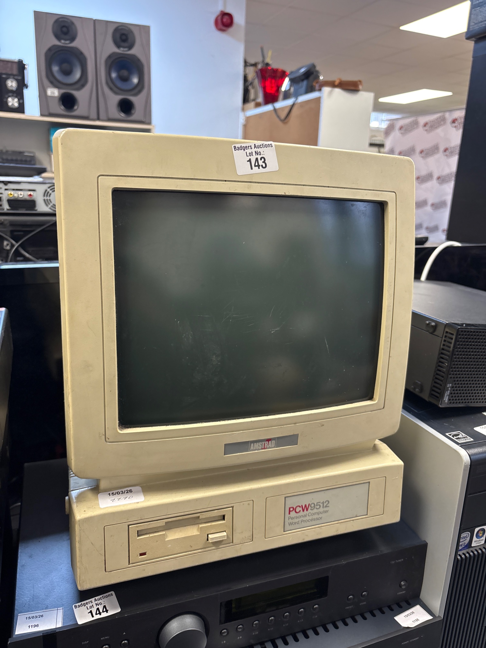 This Amstrad PCW9 512 shows signs of age and use, consistent with a vintage item. It is presented for restoration or display, and its originality adds to its appeal for collectors of retro computing equipment. This model is of interest to enthusiasts who enjoy restoring and using classic computers, or those seeking a nostalgic piece of 1980s technology.