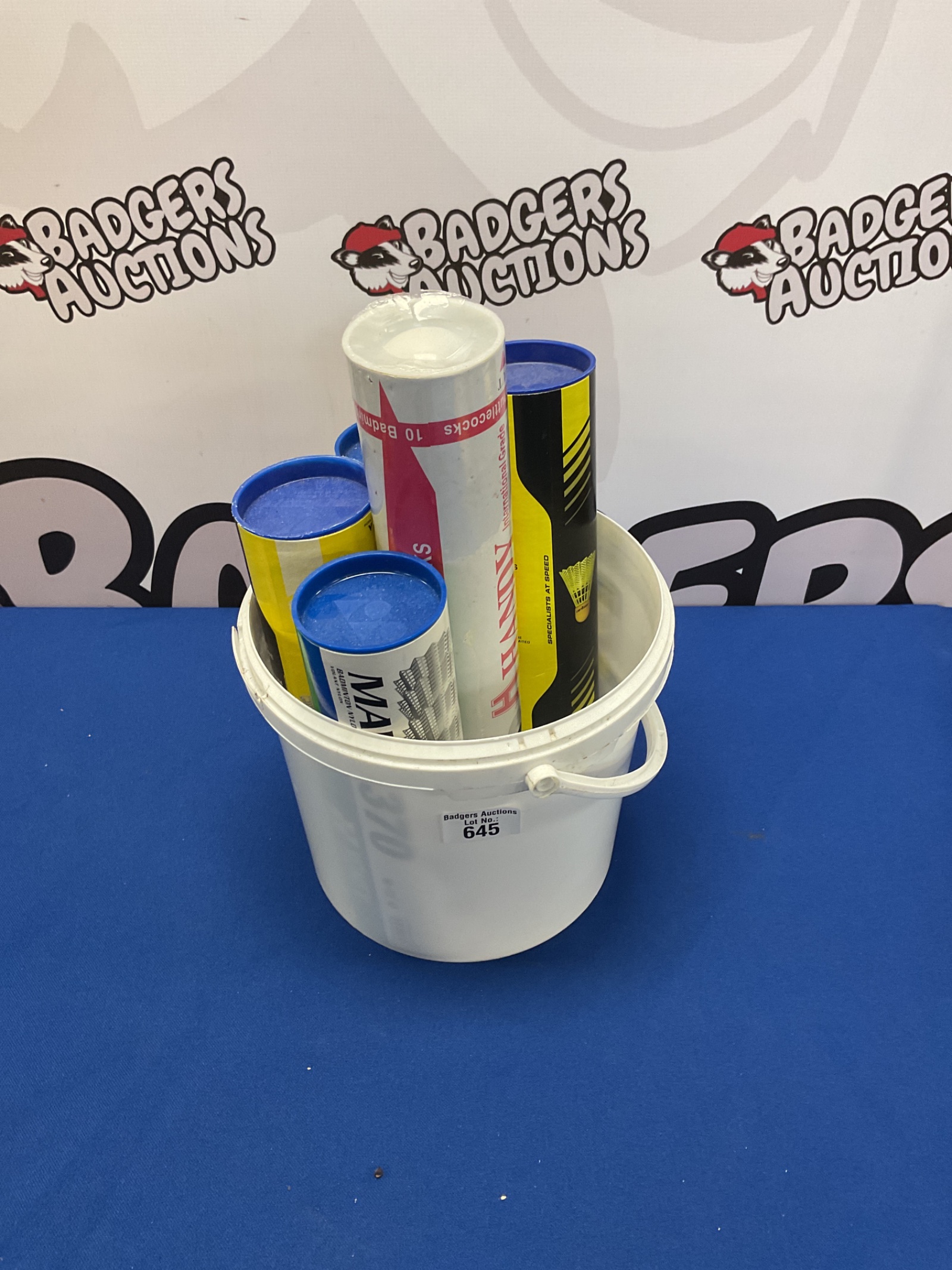 This lot consists of multiple tubes of badminton shuttlecocks, intended for recreational or competitive play. The tubes appear to contain plastic shuttlecocks, commonly used for indoor badminton games. The quantity and specific type of shuttlecock within each tube are not immediately apparent, but the lot offers a substantial supply for practice or matches.