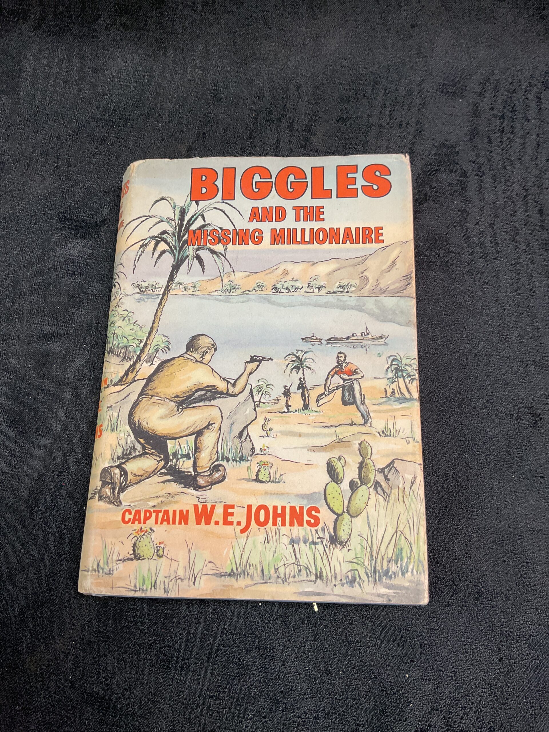 This copy shows signs of age and wear consistent with its vintage, adding to its character and appeal. The book is of interest to collectors of vintage children’s literature, fans of the Biggles series, and those seeking a nostalgic piece of British popular culture. Its first edition status and the enduring popularity of the Biggles character make it a desirable addition to any collection.