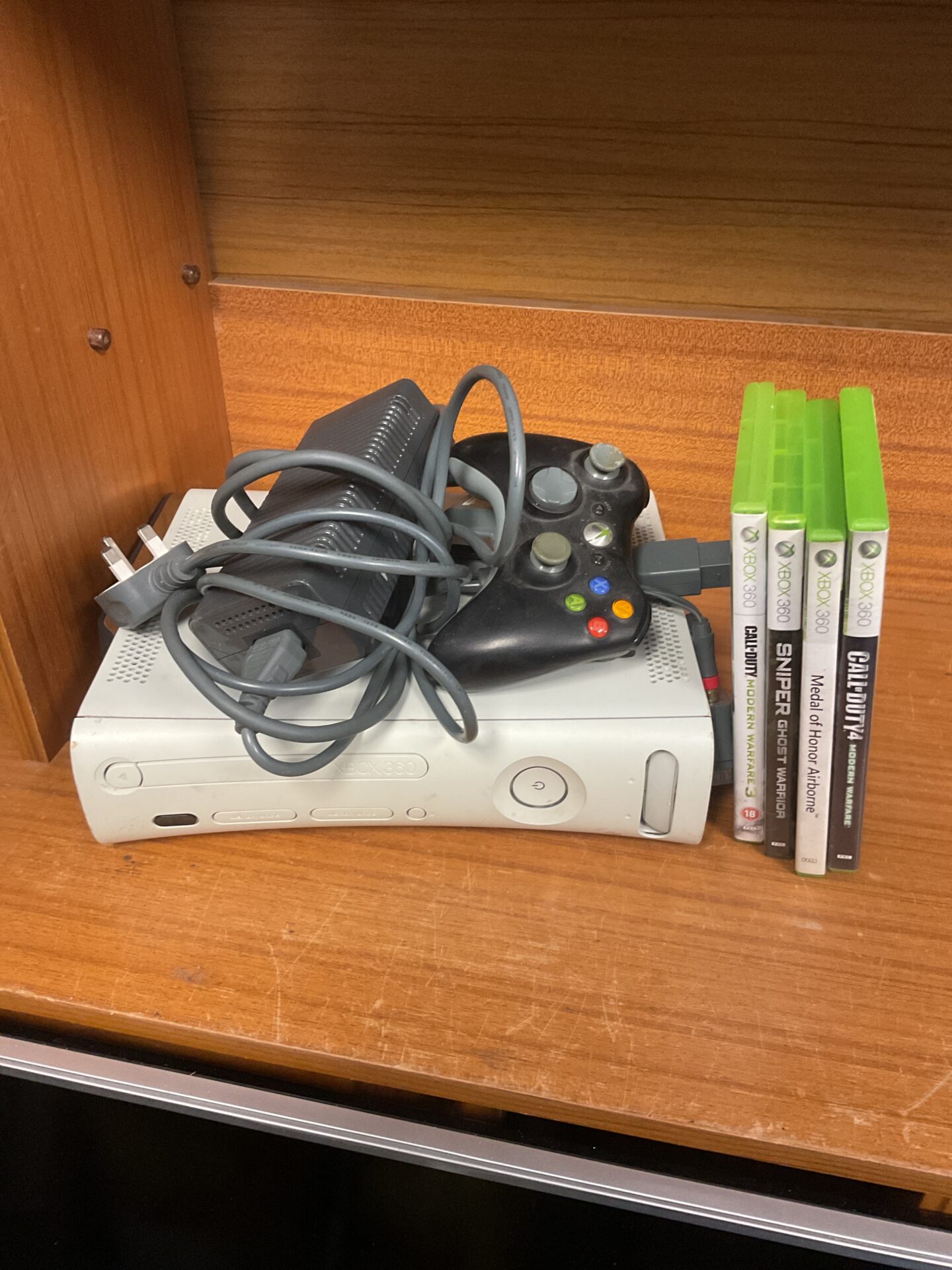 The console and accessories exhibit signs consistent with use and age. This bundle may appeal to collectors of retro gaming consoles or those seeking an affordable entry point into the Xbox 360 library. Please examine the provided images carefully to assess the condition before purchasing.