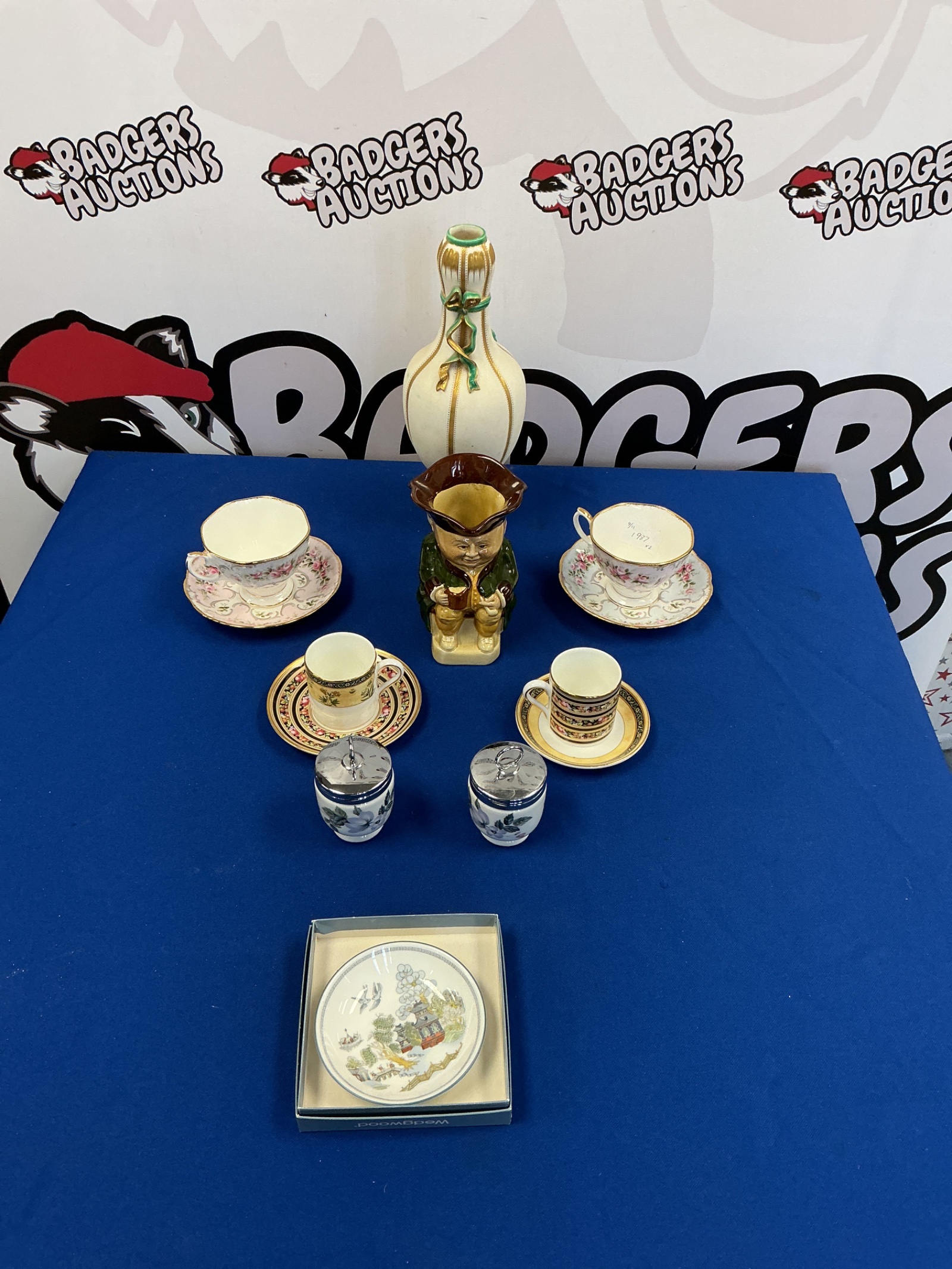 The egg coddlers exhibit signs of age and use, with some minor wear to the gilding and porcelain consistent with their vintage. Despite this, they remain in good condition and are highly collectible, particularly for enthusiasts of Royal Worcester porcelain and vintage kitchenalia. Their charming aesthetic and historical significance make them a desirable addition to any collection or a unique decorative piece.