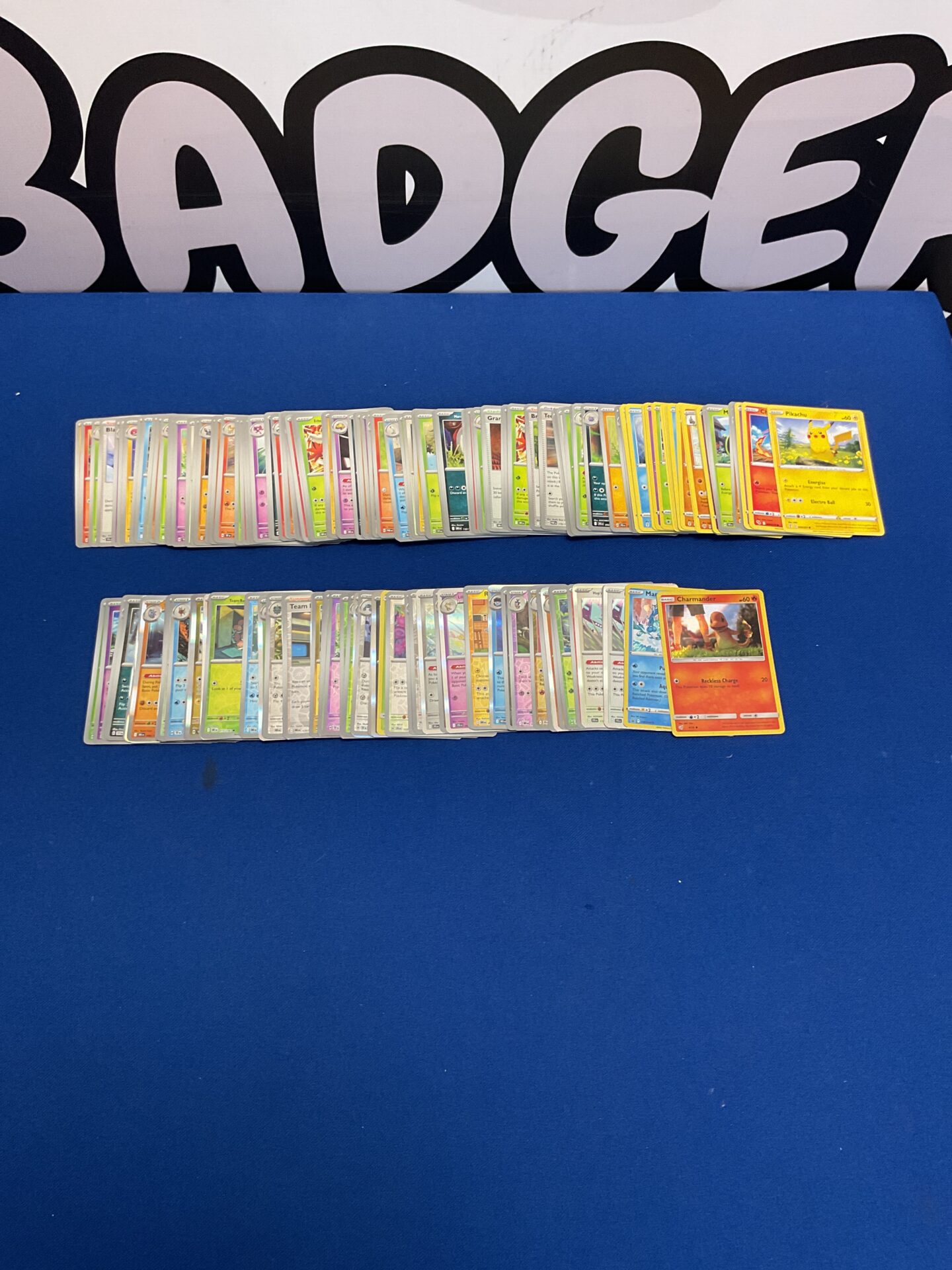 The cards exhibit varying degrees of wear, consistent with trading cards of this type. Some cards may show edge wear, minor creasing, or surface scratches. This lot presents an opportunity for collectors to expand their existing sets or for new enthusiasts to begin their Pokemon card journey.