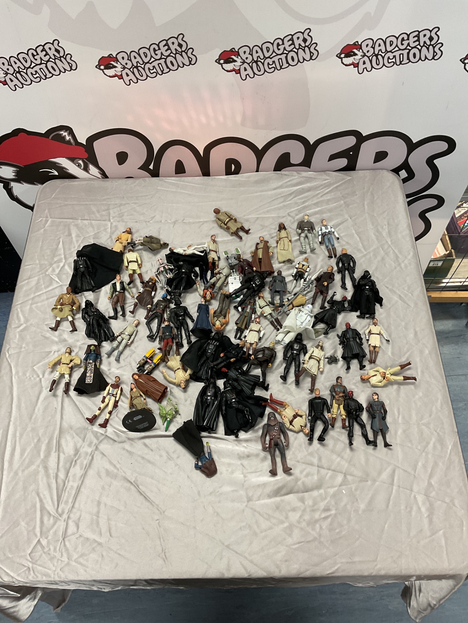 This lot comprises a collection of Star Wars action figures, featuring iconic characters such as Darth Vader, Luke Skywalker, Anakin Skywalker, and Chewbacca. The figures represent a variety of eras and designs within the Star Wars universe, offering a diverse selection for collectors and enthusiasts. These figures showcase the popular characters and designs from the Star Wars saga.