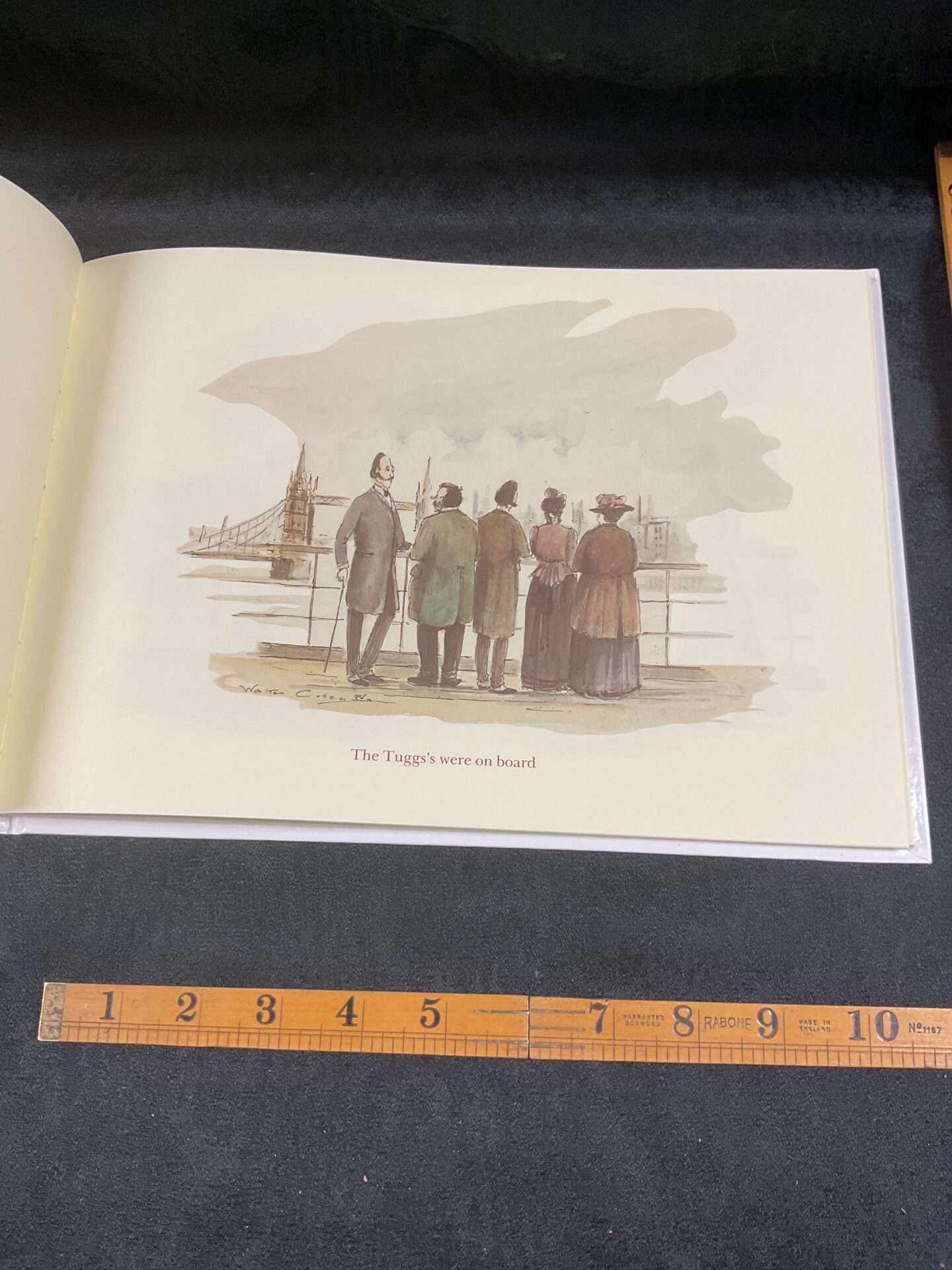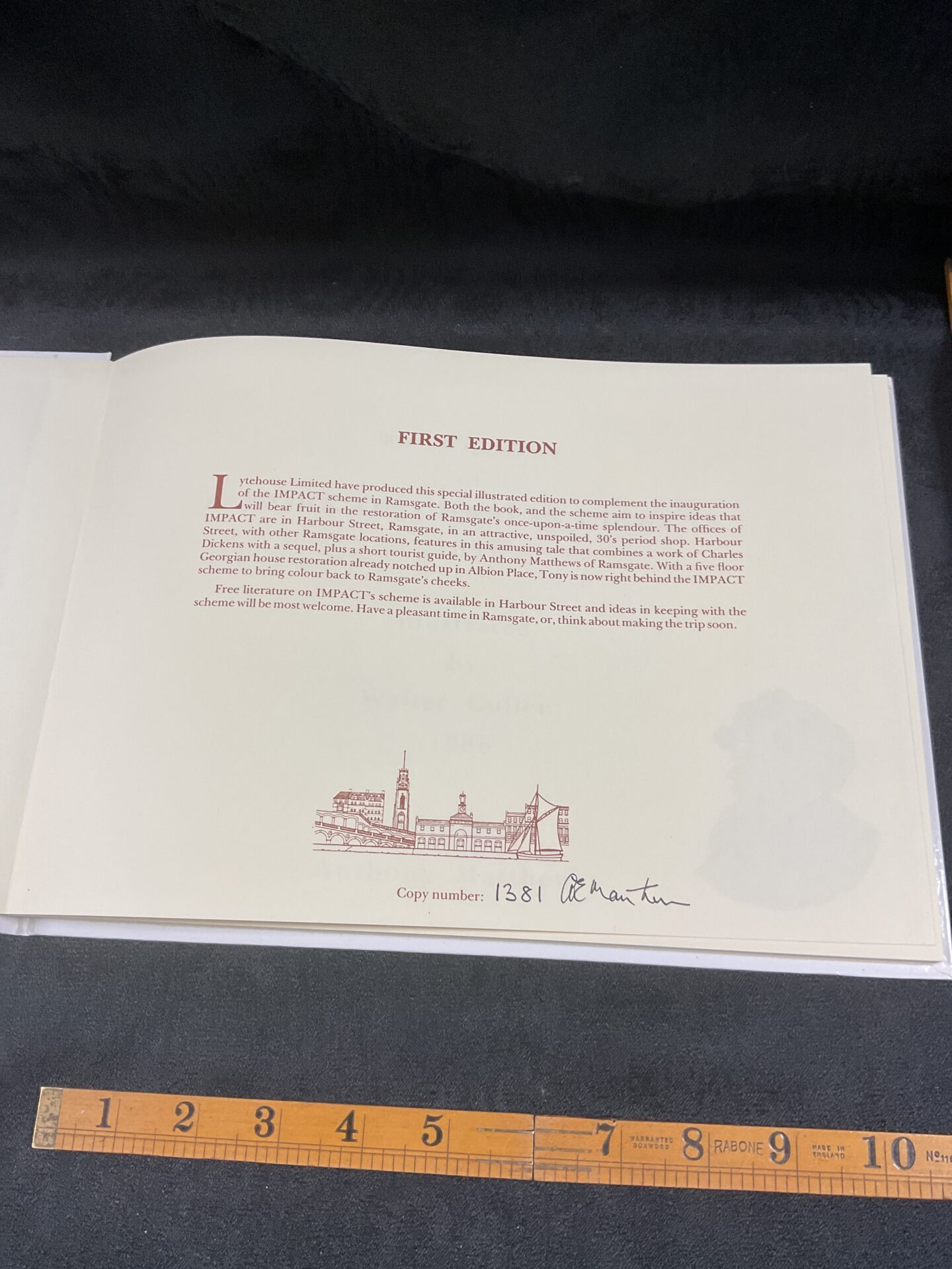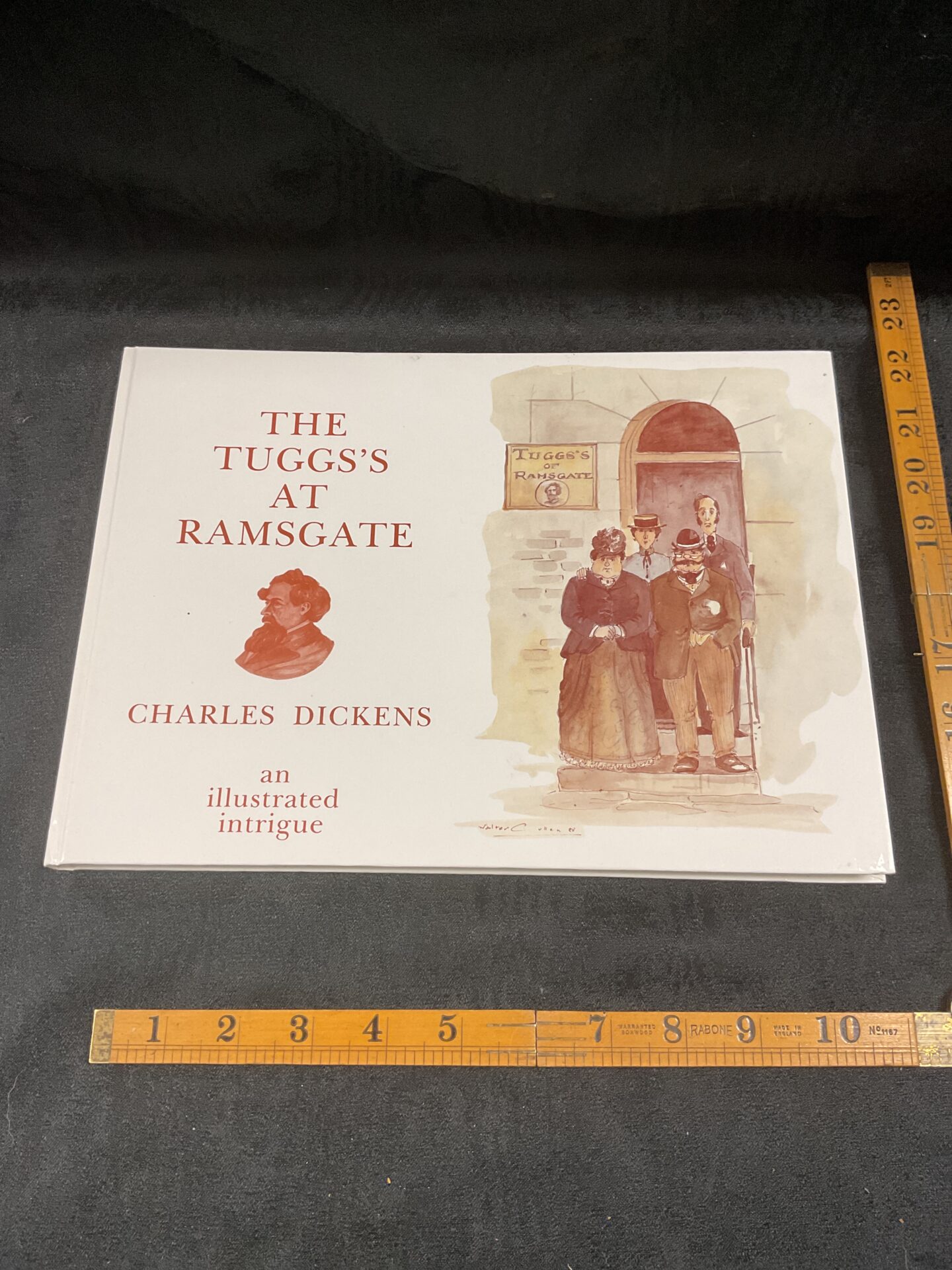 This is a first edition of Charles Dickens’ *The Tuggs at Ramsgate: An Illustrated Intrigue*, a limited edition production. Number 1381 of an unknown total, this copy is signed by Anthony Matthews, the author of the illustrations. The book features charming illustrations throughout, depicting scenes from the story and capturing the Victorian aesthetic.