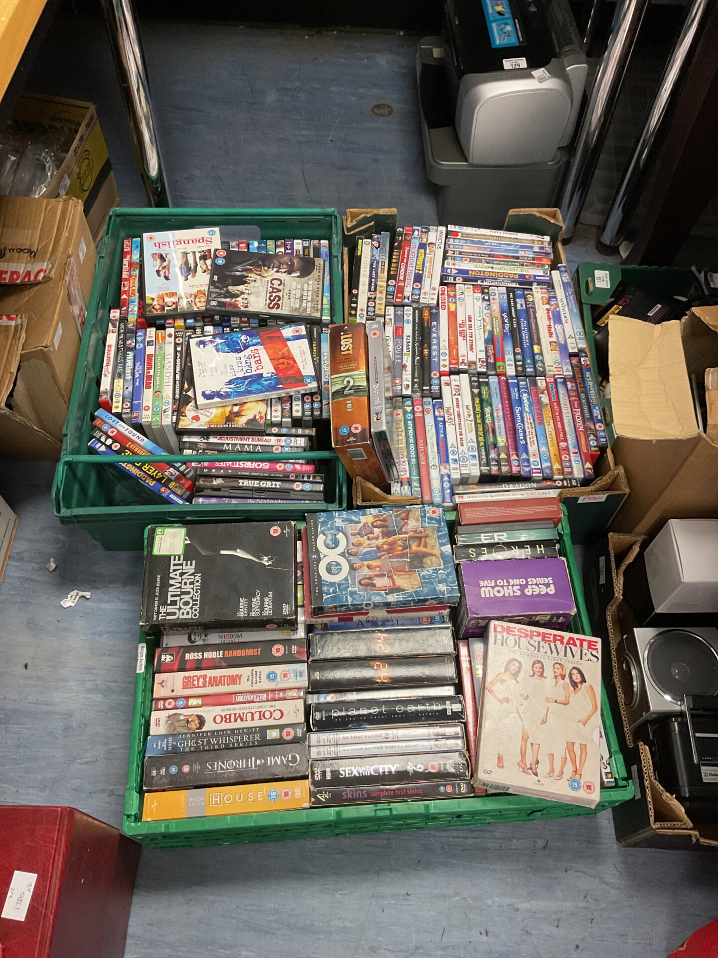 Dive into a cinematic treasure trove with these three trays of DVDs and boxsets, perfect for those who love a good binge-watch. Whether you’re in the mood for classics or contemporary hits, this collection is sure to keep you entertained for hours—no popcorn required!