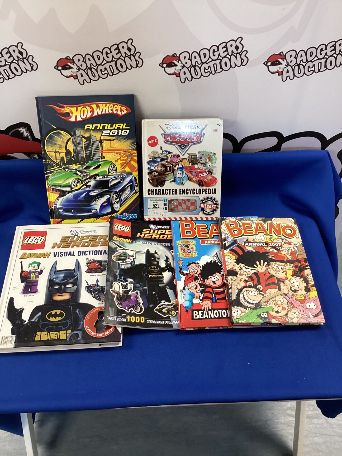 This lot comprises a selection of children’s annuals and books, including two DC Lego Batman publications, two Beano annuals, and two car-themed books featuring Pixar’s *Cars* and a Hot Wheels annual. These publications offer a nostalgic glimpse into popular children’s entertainment from recent years, providing hours of reading enjoyment and colourful illustrations. The variety of themes caters to diverse interests, making this a versatile collection for young readers or collectors.